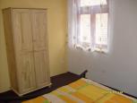 Nově zrekonstruovaný dům se nachází 50m od náměstí a je jedním z domů, který obklopuje kostel. Čtyři pokoje se čtyřmi lůžky a společná kuchyně. V přízemí je kuchyně s 2-plotýnkovým el. vařičem, lednicí, mikrovlnnou troubou, konvicí, nádobím a stolem. Dále se v přízemí nachází dva pokoje. V pokoji č. 1 je rozkládací postel (2 plnohodnotná lůžka), manželská postel, TV a koupelna. Pokoj č. 2: manželská postel, rozkládací postel s jedním plnohodnotným lůžkem a jedním vysouvacím lůžkem s omezeným prostorem, TV, koupelna. V patře pokoje č. 3 a 4. Pokoj č. 3: místnost s manželskou postelí a TV, vedlejší místnost s rozkládací postelí a vchodem do koupelny. Pokoj č. 4: místnost s manželskou postelí, TV a vchodem do koupelny, druhá místnost s manželskou postelí. V domě je zakázáno kouření a pobyt se psy. Parkování cca 50m od domu. Na zahrádce domu je možnost posezení, markýza, gril.