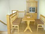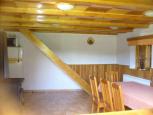 Chatu je možné pronajmout si jako celek pro až 9 osob nebo jednu z jejích dvou částí. Vstup do chaty do společenské místnosti s krbem, rádiem a stoly se židlemi. Tato místnost je společná pro obě části chaty. Část 1: kapacita-5 osob. Ve spodní části je koupelna se sprchou, umyvadlem a WC, kompletně vybavená kuchyňka-sporák se sklokeramickou deskou a troubou, kombinovaná chladnička, rychlovarná konvice. Prostorná jídelna s krbovými kamny, TV. V horní části je částečně oddělená ložnice pro 5 osob. Vytápění krbovými kamny. Část 2:kapacita-4 osoby. Komfortní výbava vč. nového nábytku a sauny. Ve spodní části se nachází nová plně vybavená kuchyňka (vestavěný vařič ze sklokeramiky, rychlovarná konvice, toastovač, vestavěná kombinovaná chladnička), WC, sprcha, umyvadlo, sauna. V horní části je jídelna s TV, prostorná ložnice se skříněmi a 4 postelemi + TV. Elektrické vytápění. Na neoploceném pozemku je k dispozici udržovaný trávník a velké přírodní ohniště, v těsné blízkosti parkoviště a příjezdová cesta. Možnost zapůjčení grilu. Spotřeba el. energie do 50kW v ceně pronájmu. Obchod a restaurace 1km.