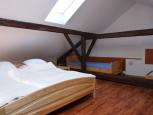 V hlavní obytné části v 1. nadzemním podlaží se nachází obývací pokoj s gaučem (2 přistýlky), krbem a TV, kuchyně a koupelna (vana, WC, umyvadlo). V podkrkoví je prostorná ložnice s manželskou postelí a dvěma samostatnými lůžky. V přízemí, odkud je také vstup na zahrádku, je další ložnice se samostatnou koupelnou (sprcha, WC, umyvadlo) a lůžkem s přistýlkou. Oplocená zahrádka s posezením a krbem. Pobyt možný se psem. Obchod 500m, restaurace 100m. Objekt se nachází v lokalitě s možností sportovního vyžití - bazén ve vzdálenosti 300m, tenisové kurty 400m. Centrum města je nedaleko - cca 7min chůze.
