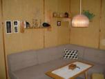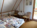 Dřevěná chata s krásným výhledem na přehradu a okolní lesy. V přízemí obývací pokoj s jídelním stolem, sedací soupravou, TV a rádiem. Kuchyňka se základním vybavením (sporák, nádobí, příbory, rychlovarná konvice), remoskou, překapávačem a lednicí. Z chodby vstup na WC, do sprchovacího koutu a podkroví. V podkroví jsou dvě ložnice (2+3 lůžka), z nichž jedna je průchozí. Topení kamny na tuhá paliva. Venku posezení, ohniště s grilovacím roštem a lávovým kamenem. Koupání v přehradě. Možnost půjčit si od majitelů pramici a kola. Pozemek oplocený živým plotem. Parkování na pozemku přímo u chaty. Po dohodě možnost pobytu s malým psem. Obchod a restaurace 600m v Červené Řečici.