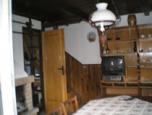 Zděná chata. Částečně dřevěné obklady. Obývací místnost s krbem, BTV, jídelním stolem, rozkládací lavicí (přistýlka). Kuchyně se základním vybavením - dvouplotýnkový sporák, nádobí, příbory, rychlov. konvice, mikrovlnná trouba, lednice (druhá lednice je venku - s mrazáčkem). Ložnice - dvě 2-lůžka s rádiem a posezením, které lze využít jako 2 přistýlky. Koupelna - sprcha, vstup na WC z verandy. Topení krbem, koupelna vytápěna kuchyňskými kamny, možnost použít i teplomet, ohřev vody bojlerem. Zahrada 3000m2, zastřešené posezení s krbem, udírnou, rožněm a pískoviště. Možnost vaření venku. Pobyt se psem není možný. Součástí ceny není poskytování povlečení a ručníků a spotřeba vody a elektrické energie!!! Hřiště 50m, obchod 2km, restaurace 2km, les 1-2km, lyžařský vlek 1km. Po dohodě možnost dopravit zákazníky bez auta od zastávky na chatu a na nákup. Čas zahájení pobytu 11-13 hod.!