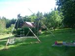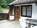 Dvoupodlažní chalupa vhodná pro ubytování dvou až tří rodin. V přízemí obývací kuchyně s kuch. linkou, jídelním stolem, TV a krbem. Z kuchyně vedou dveře do ložnice s manželskou postelí. Z chodby vstup do pokoje s palandami a jedním lůžkem (celkem 3 lůžka). V přízemí dále koupelna se sprchovým koutem, umyvadlem a WC. Na chodbě pračka a mrazák. Do horního patra vstup po točitém venkovním schodišti přes velkou terasu s posezením. Malá koupelna se sprch. koutem, umyvadlem a WC. Kuchyně se zákl. vybavením spojená s obýv. pokojem. Jeden pokoj s dvojlůžkem. Druhý pokoj se čtyřmi lůžky (dvě patrové postele). Do obou pokojů vstup z obýv. pokoje. Samostatná část v přízemí objektu výminek - pokoj s kuchyňskou linkou a třemi lůžky. Nutné vlastní povlečení! Oplocená zahrada. Venkovní bazén. Pingpongový stůl. Venkovní posezení a posezení v malém altánku s krbem. Majitelé na přání zákazníka zajistí grilování selete. Okolí ideální pro sběr hub a borůvek. Parkování na pozemku. Příjezd po asfaltové a lesní cestě. Obchod a restaurace v Senožatech 5km.